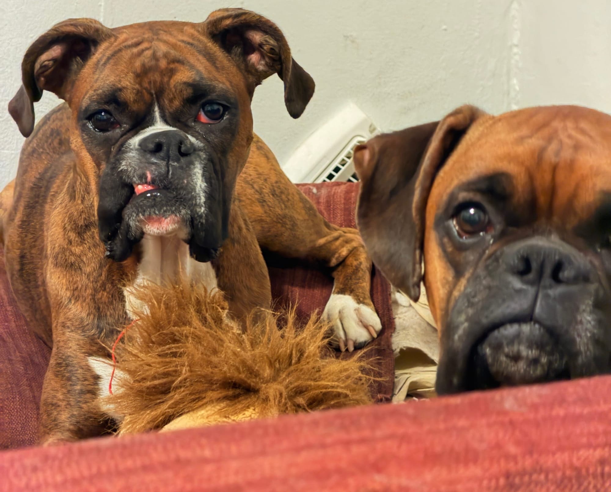 Even though many of us love nighttime cuddles, two or three Boxers in a small bed can turn into a windmill of paws. A good compromise: bedtime closeness with separate, cozy dog beds that live near your side.